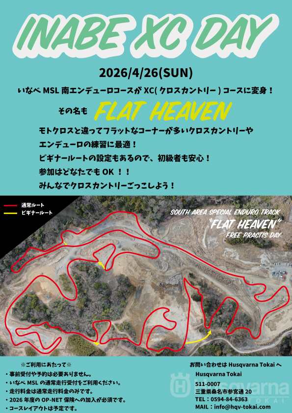 4/26(日) いなべモータースポーツランドにてXC DAY開催決定です!